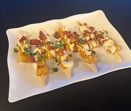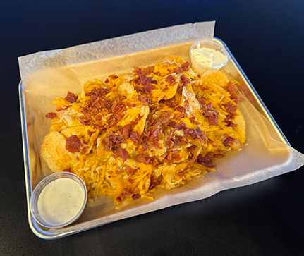 Pub Chips topped with Cheddar Jack Cheese & Bacon. Served with Ranch & Sour Cream.
